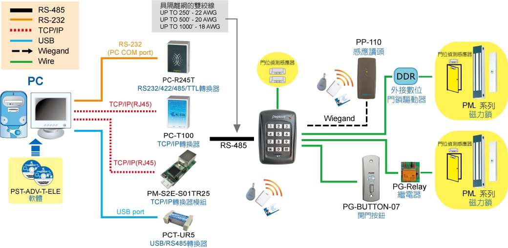 PP-85VL/PR5 : Pegasus格式門禁考勤感應(yīng)卡機(jī),2,000人,1,000筆,RS-485